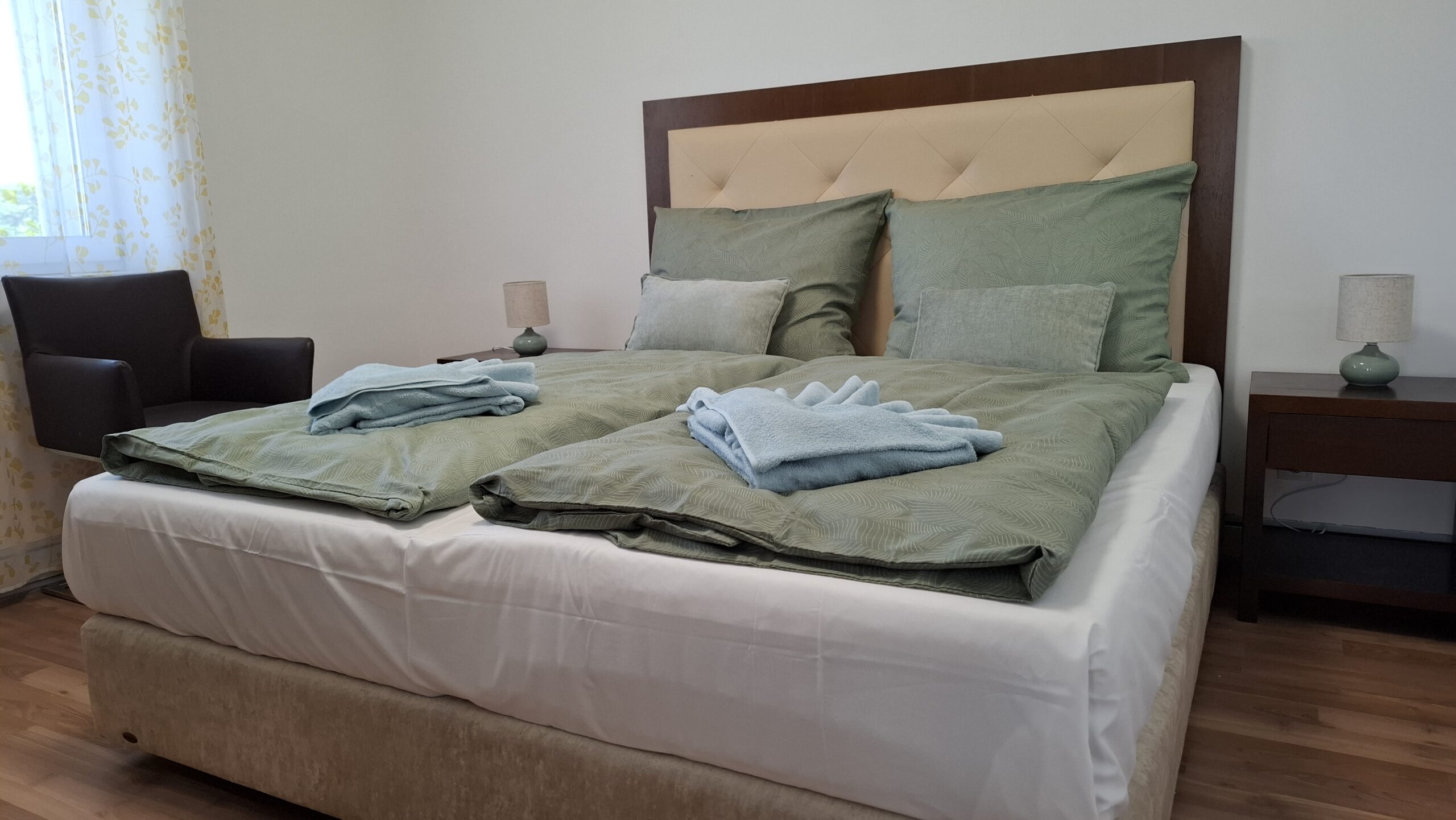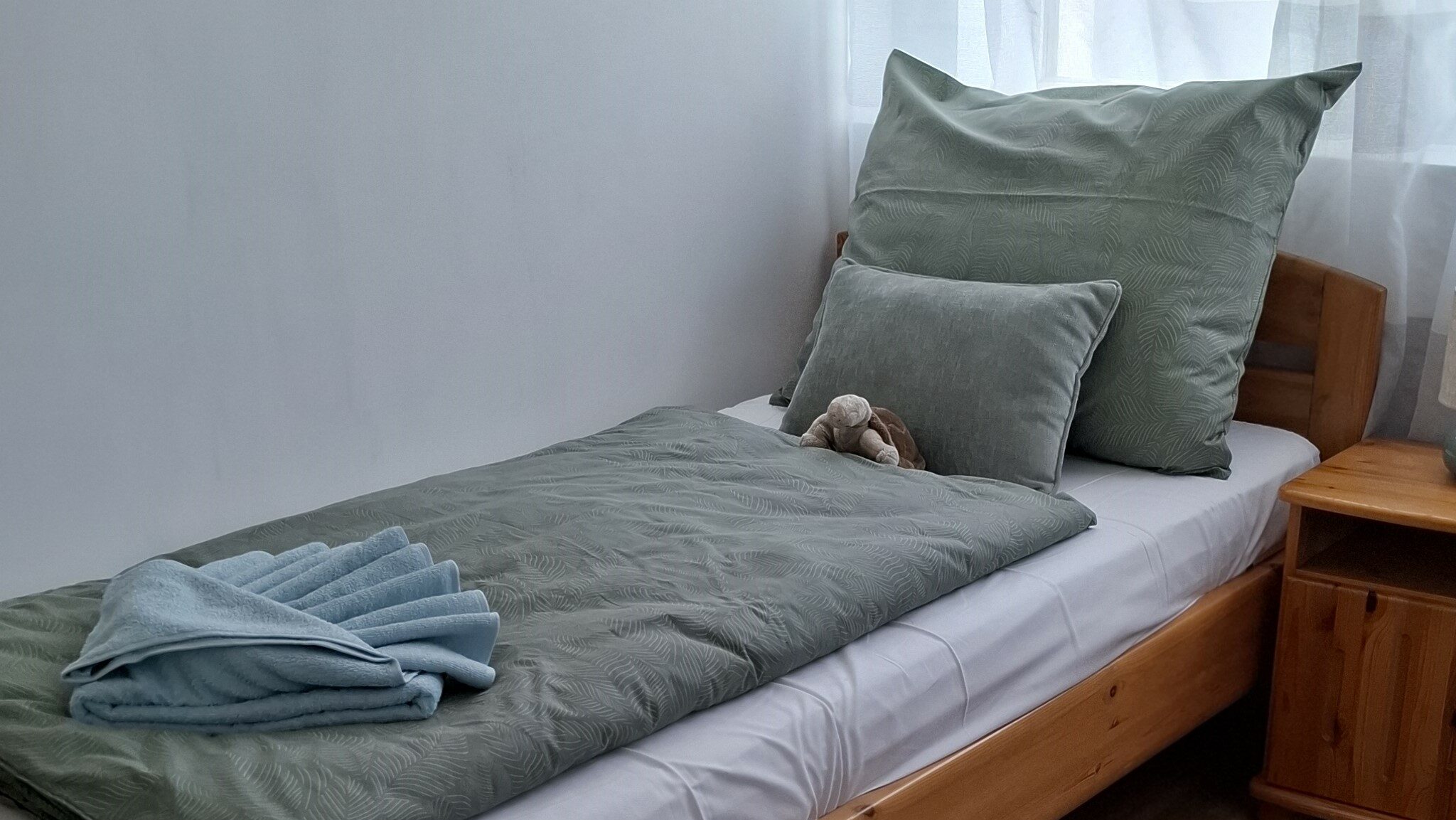 Modern berendezéssel ellátott, frissen felújított, gyönyörű szobáinkban ugyan valószínűleg kevés időt fognak tölteni, de azért mindent megtettünk, hogy mind a szülők, mind a gyerkőcök a lehető legjobb érezzék magukat. A felnőttek szobájában egy 180 cm széles franciaágy várja a nap végén megfáradt szülőket. Természesen a Wi-Fi adott, hogy a puha ágyban nyugodtan átböngésszék a híreket, közösségi tartalmakat, vagy a TV-n megnézzenek egy filmet.